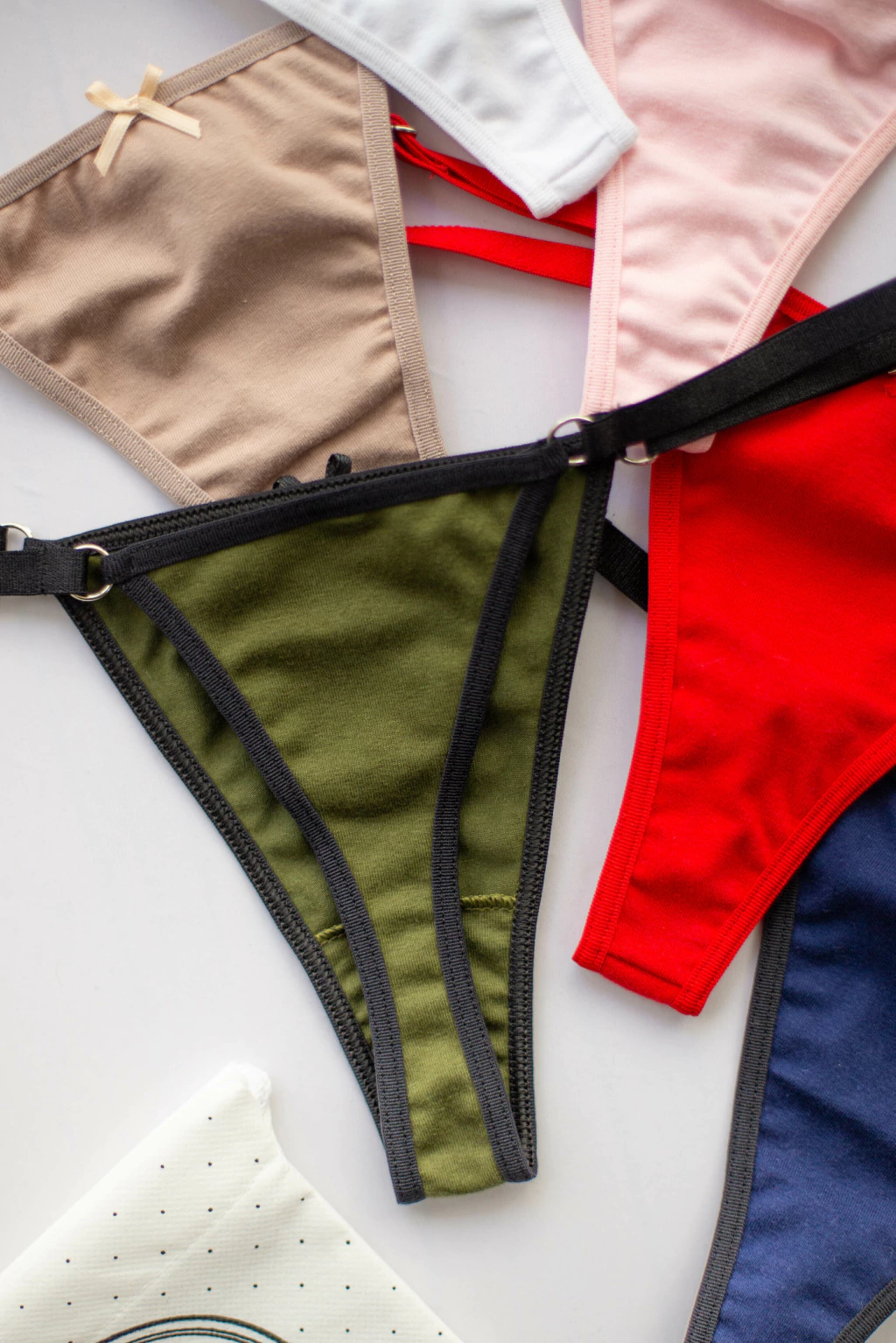 Colores: Blanca con puntilla, rosa, nude, rojo, azul, verde militar.